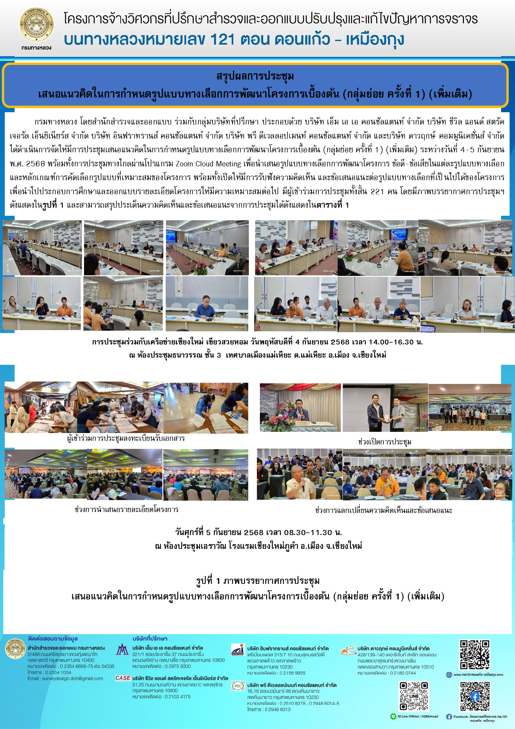 สรุปผลการประชุมเสนอแนวคิดในการกำหนดรูปแบบทางเลือกการพัฒนาโครงการเบื้องต้น (กลุ่มย่อย ครั้งที่ 1) (เพิ่มเติม)